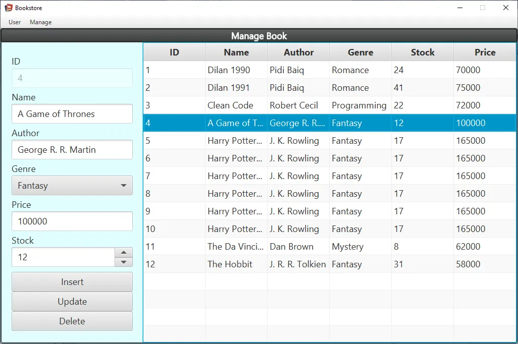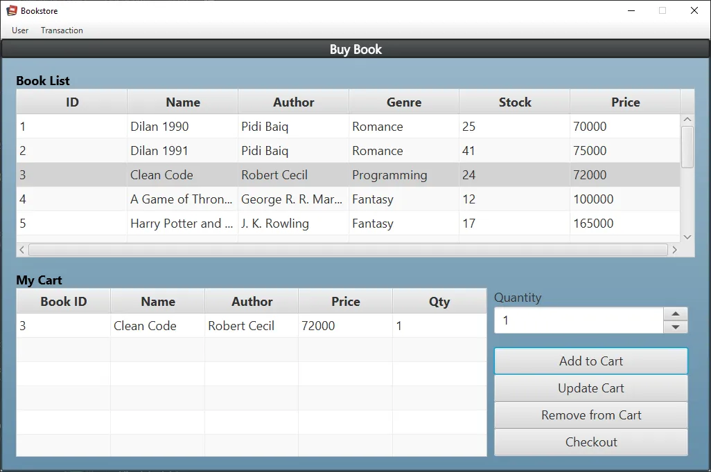 Bluejack Bookstore is a store that sells books of various genres. To manage all the transactions and manage system of the book, Bluejack Bookstore’s owner asked you to create the program for the store. The program should be made using Java Programming Language.