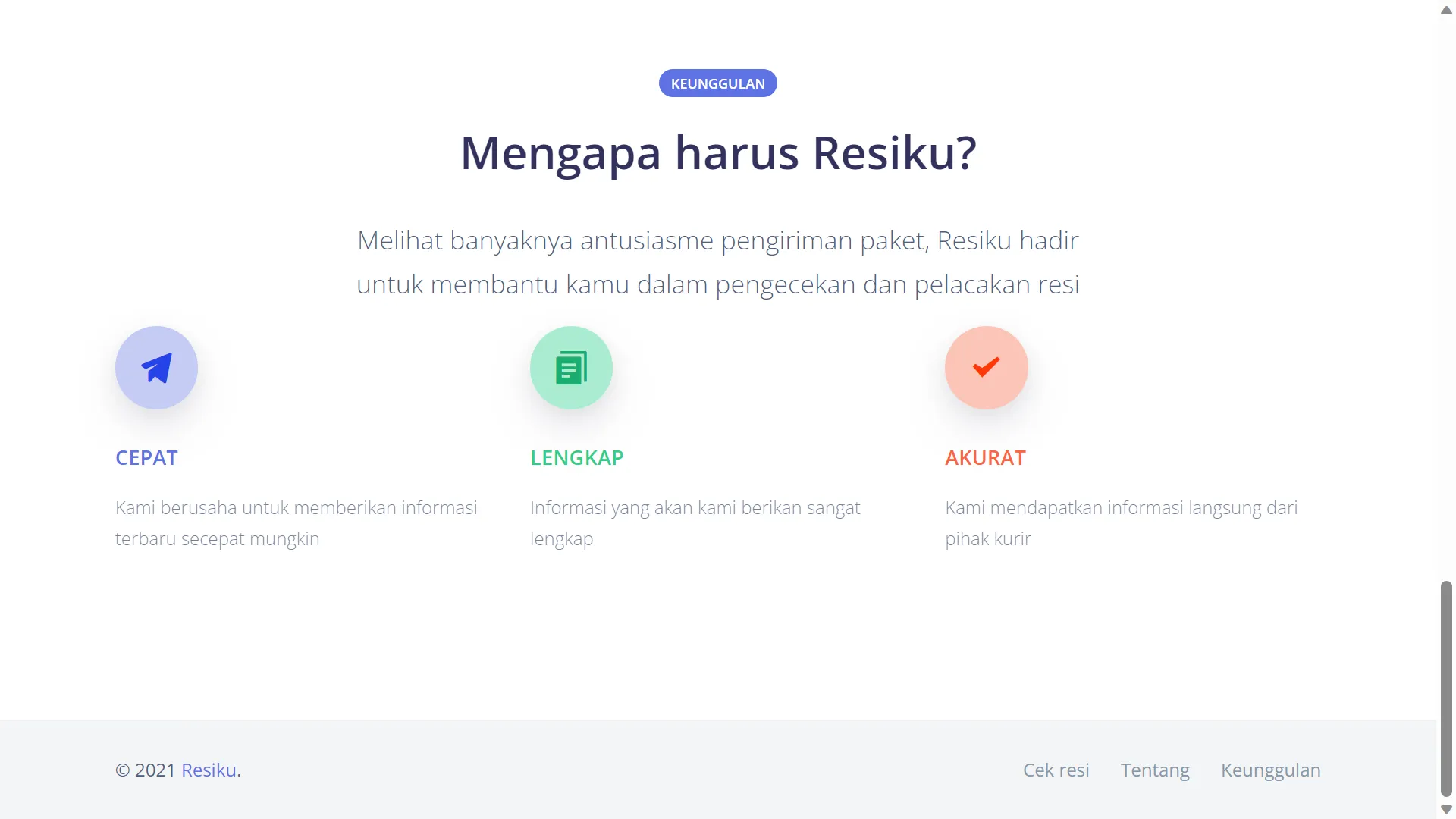 Resiku is a web application for checking Airway Bills for goods sent via Indonesian expeditions. Seeing the enthusiasm for sending packages, Resiku is here to help you in checking and tracking receipts. Fast Results, Accurate & Complete Status.