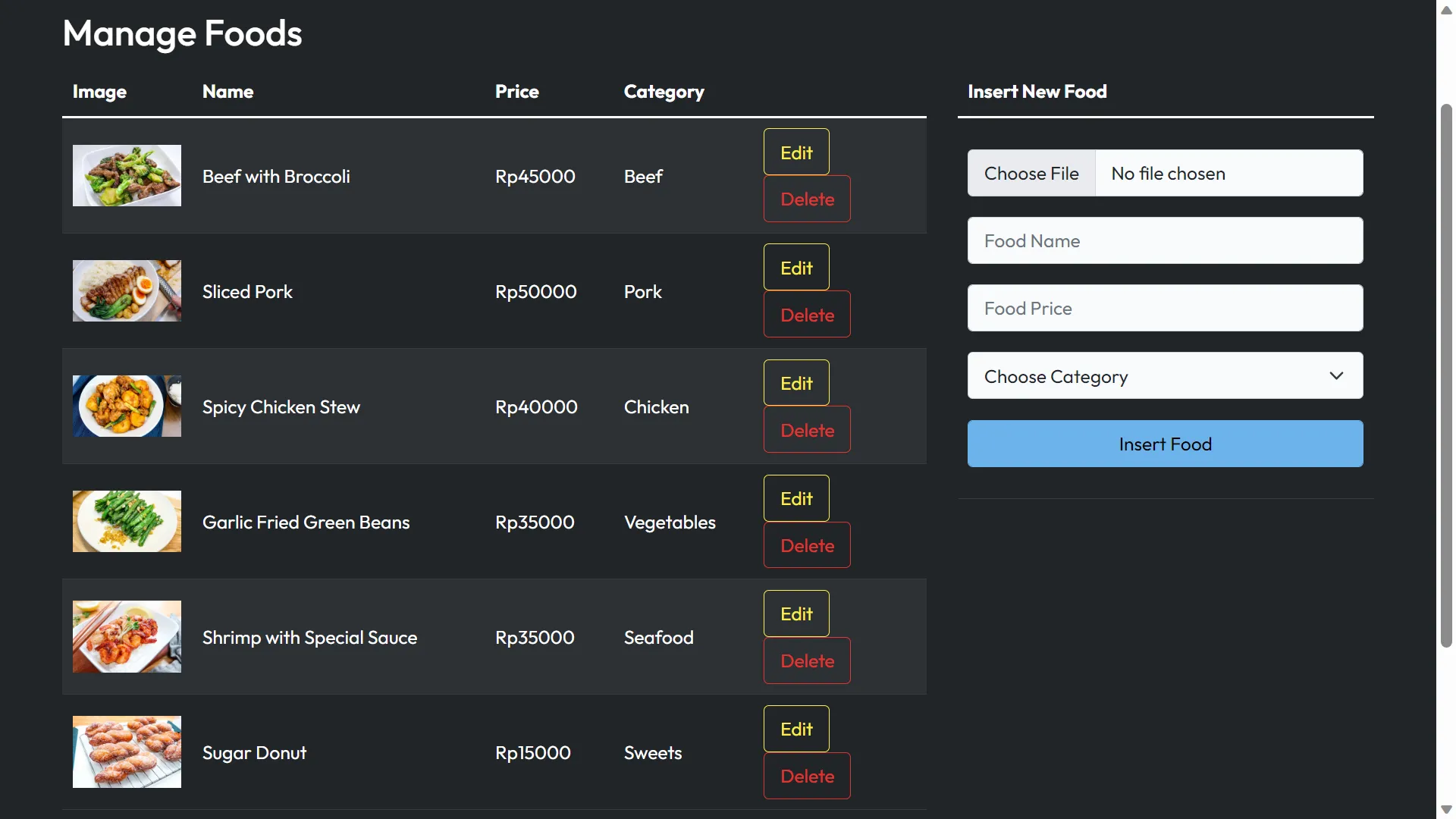 Create A Laravel web application for restaurant app